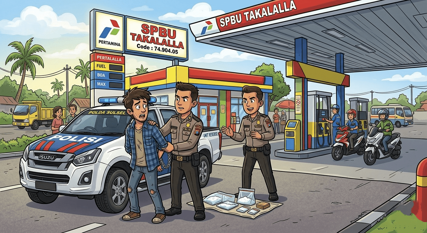 Polisi Ringkus Pengedar Sabu di SPBU Takalala, 5 Sachet Diamankan