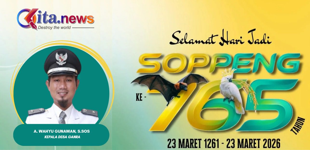 JANJIMU.COM, – SOPPENG – Memasuki bulan Maret, Kabupaten Soppeng merayakan momen bersejarah. Kepala Desa Ganra, A. Wahyu Gunawan, S.Sos, secara resmi menyampaikan ucapan selamat atas Hari Jadi Soppeng (HJS) ke-765. Rabu, (08/4/2026).