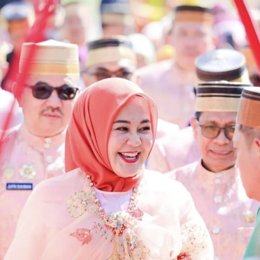 Wagub Fatmawati Rusdi tampil memukau dalam balutan busana khas Bugis-Makassar, merefleksikan keanggunan dan penghormatan terhadap tradisi leluhur. Senyum ramah dan sapaan hangatnya kepada para tamu undangan memancarkan keramahan khas Sulawesi Selatan.
